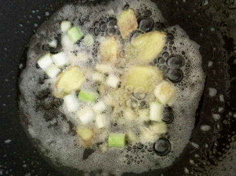 2、切好需要用到的食材,热锅倒油放入葱姜蒜爆香。