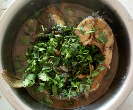 1、准备食材:鲤鱼一条、大葱、姜、大蒜、油、盐、酱油、白糖、五香粉、醋。