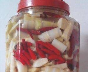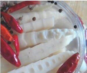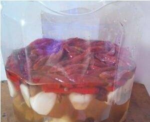 5、再加少许盐巴、白酒,放置一星期后即可食用。