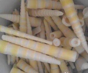 2、新鲜竹笋去壳洗净,用水煮5-10分钟,起锅,用水漂一天,待用。