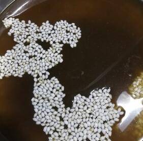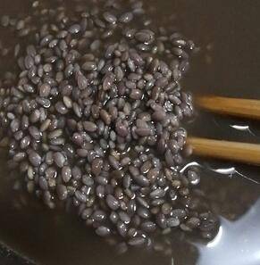 4、滤出汤汁,加热到50℃左右,倒入糯米搅拌均匀。
