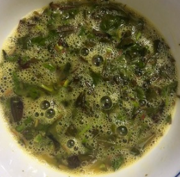 2、香椿芽洗净焯水过凉沥干,切碎,调入鸡蛋液,加盐调匀。