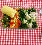 1、准备食材:鸡胸肉、香菇、秋葵、土豆、红椒、玉米、木耳菜。