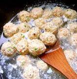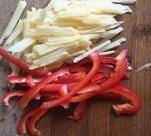 5、丸子熟时放入木耳菜,将土豆和红椒切丝,少油少盐炒熟。