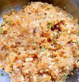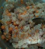 2、鸡胸肉、红萝卜,剁碎搅拌。