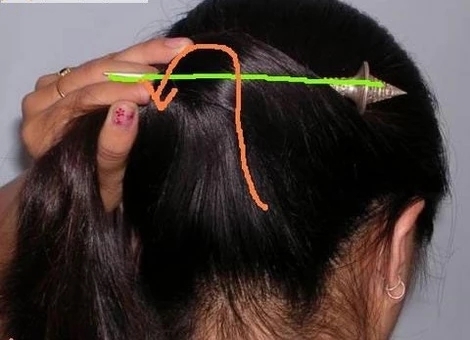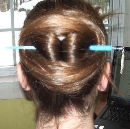 4:头发绕着发簪往下,头发长的姑娘多绕几圈哦。