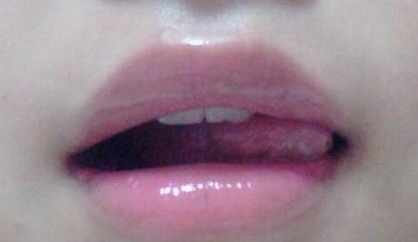 (注意:嘴唇容易干红况为顺裂的亲建议不要轻易尝试。要注意嘴唇的补水保湿,不然嘴巴干干的,口红裂开就不好看了.)