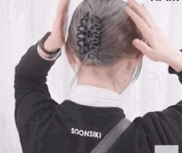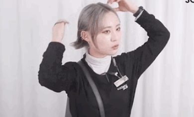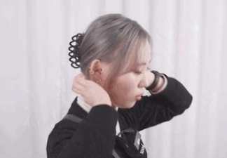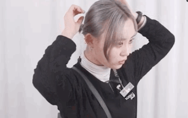 :把头发抓成一个小啾,留一些碎发在刘海部分,不用太刻意,用手操作更显随性。