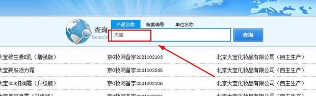 5:以国产的大宝为例,进入页面后搜索大宝后点击查询就可以查看化妆品的成分了。