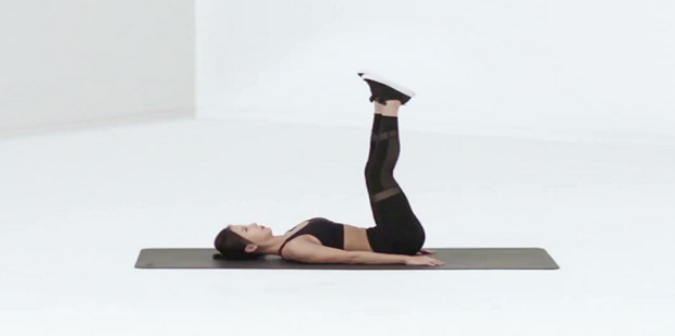 1:蹬自行车:仰卧在垫子上,双手伸直掌心向下放在身体两侧,双腿并拢,弯曲膝盖,然后腹部收紧,颈部放松,上身不动,向身体移动双腿,大腿逐贴近腹部,吸气的同时右脚缓慢向上蹬,蹬的时候脚尖向内勾起,直至;右腿到达顶点之后,将脚尖绷直右腿笔直向地面方向移动,腹部收紧,左腿不动。