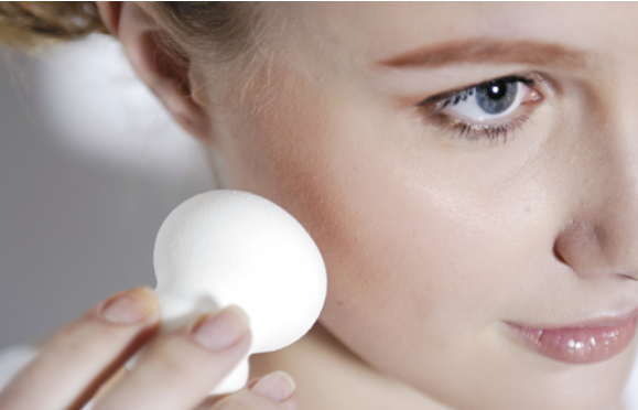 :一般市面上的美妆蛋都是水滴形、葫芦形和斜切型的,大致使用方法其实都差不太多,用比上妆区域,用尖尖部分把易卡粉的地方拍均匀!