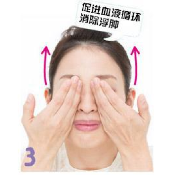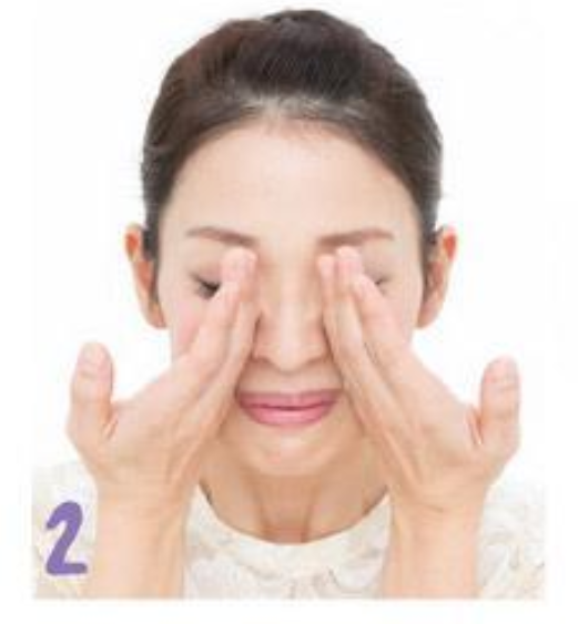 1:用食指和中指从鼻翼两侧开始提拉眼肚,然后缓缓向眼尾提拉,这个方法可以去除鱼尾纹、眼纹,