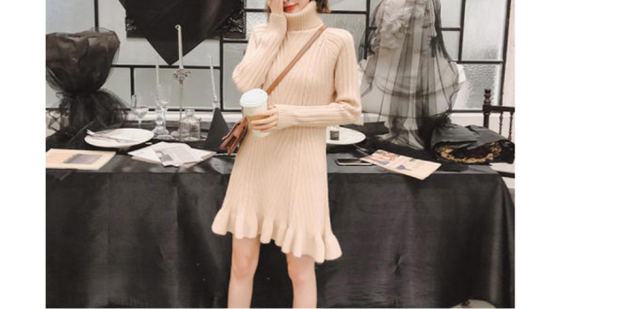 :透明镶边荷叶边裙+米色针织外套,性感又成熟