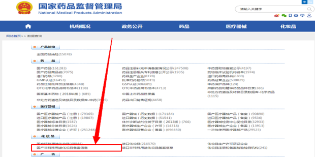 复制以下网址,打开网站特殊用途化妆品备案信息“点