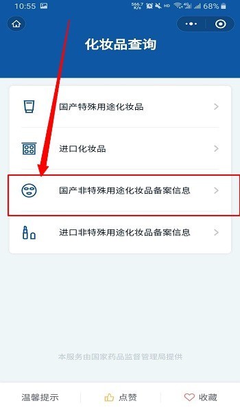 :选择化妆品种类,即可查询。