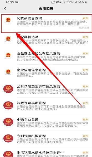 5:市场监督打开后找到“化妆品信息查询”并打开