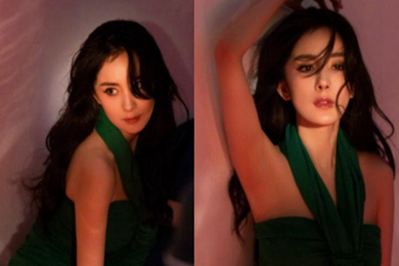 还有一张照片中,杨幂坐在类似窗台的位置,杨幂又瘦又娇小,她双手放在腿上,露出香肩,她的表情霸气又惶恐,像一只小鹿一样有灵气。