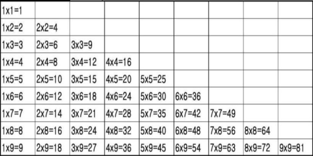 一六得六 二六十二 三六十八 四六二十四 五六三十 六六三十六
