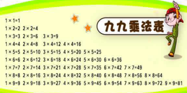 一五得五 二五一十 三五十五 四五二十 五五二十五