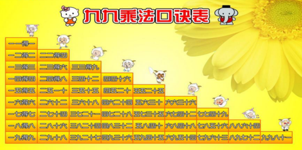 2:可以巧计这些口诀,比如:1.五九四十五和六九三和四九三十六等等。