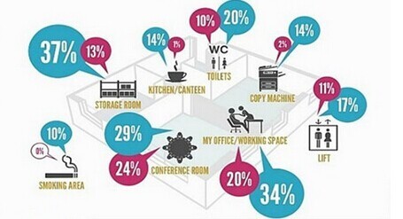 2:而女性则较喜欢会议室,因为空间较宽敞,获得24%女性的喜爱。此外,男女最喜爱的三大偷情地点分别是储藏室、个人来自办公室、会议室,最不受欢迎的地点则是吸烟室和茶水间。另有10%的女性可以接受在洗手间偷情,电梯也答经获得17%男性与11%攻愿告例半引阳间女性青睐。