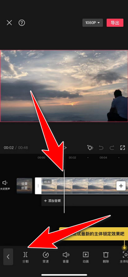 1:首先打开剪映,将分隔条放在需要分隔的位置,点击分割。