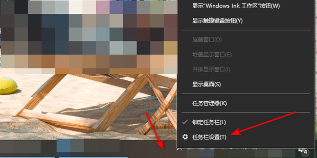 1:首先返回桌面,右键任务来自栏,点击任务栏设置。