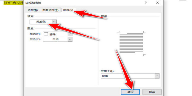 3:点击底纹设置填充为无颜色,点击确定即可。