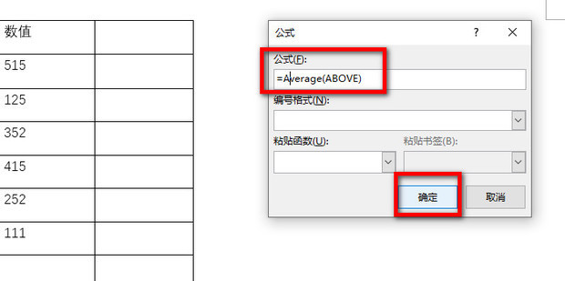 3:在公式中输入函数“=Average(ABOVE)”阻验商,点击确定即可。