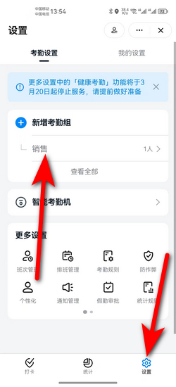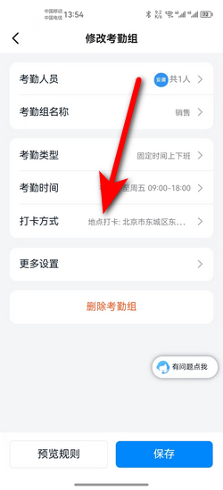 2:然后在设置页面中点击需要修改打卡位置的考勤组。