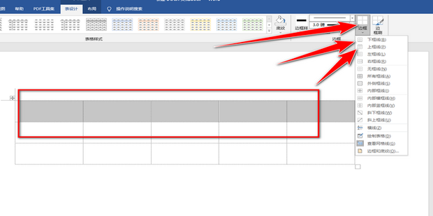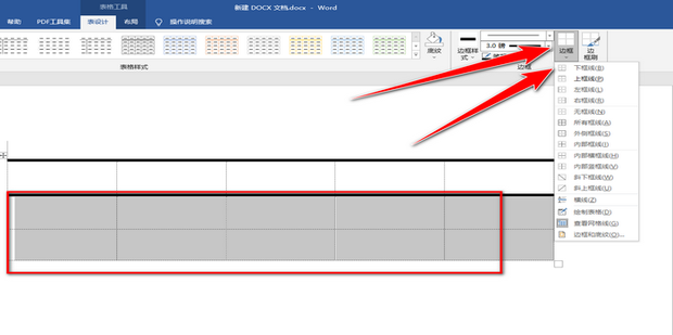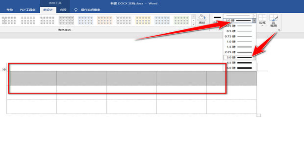 3:选中第一行,点击粗细,设置好线条的粗细。