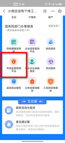 5:点击市场监督管理平台。