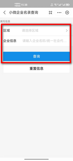 7:最后选择区域和企业信息后点击查询即可。