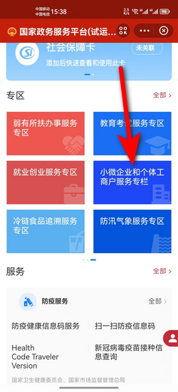 4:点击小微企业和个体工商户服务专栏。