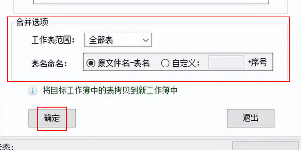 6:按需求设置好合并选项,点击【确定】即可完成。