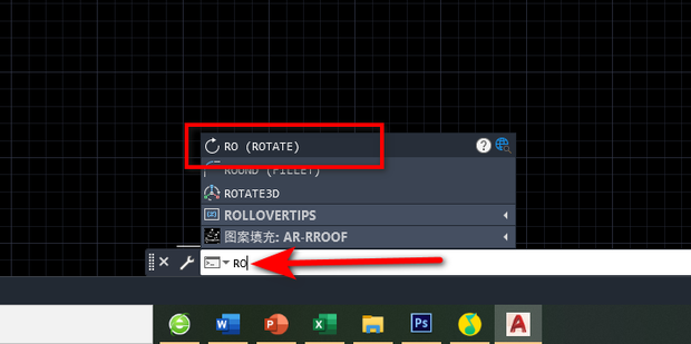 源1:首先在命令栏中输入RO来自,然后点击选择ROTATE。