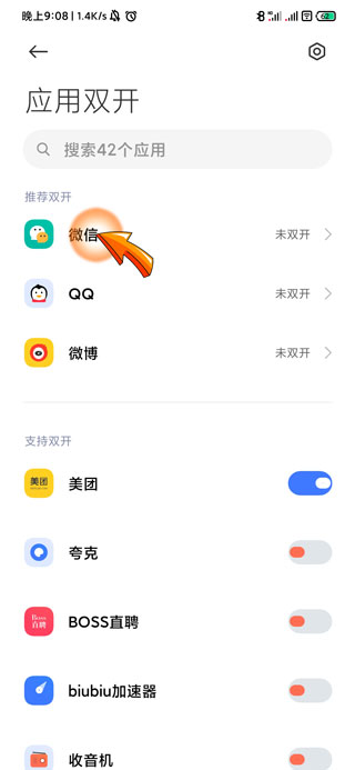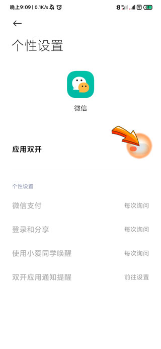 5、最后点击打开“应用双开”选项右侧的开关按钮即可。