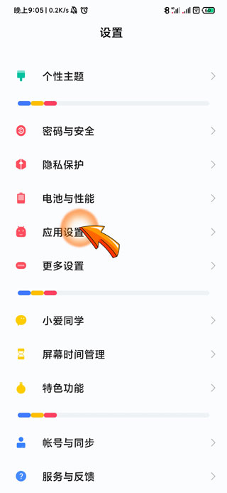 2、然后在设置页面中找到并点击“应用设置”选项。
