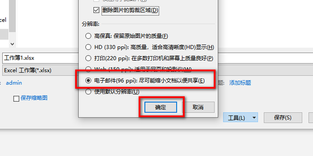 4:选择电子邮件(96ppi)尽可能缩小文档以便共享,点击确定。