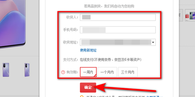 3:最后确认收货信息无误,选择有效期点击确定即可。