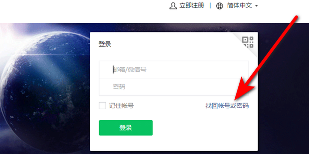 2:点击找回账号或密码。
