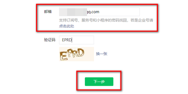 4:输入需要找回密码的公众号邮箱和验证码后点击下一步。