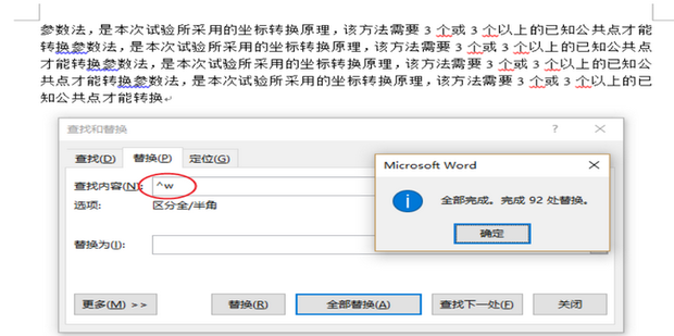 2:去多余换空格:再次按下快捷键:Ctril+H,在查找内容中输入^w,点全部替换。