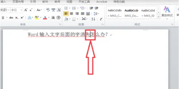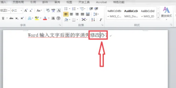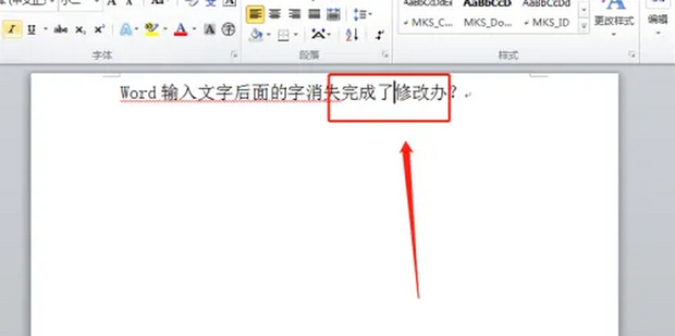 2:在“消失”后面插入文字“修改”,发现后面的“怎么”却消失了。