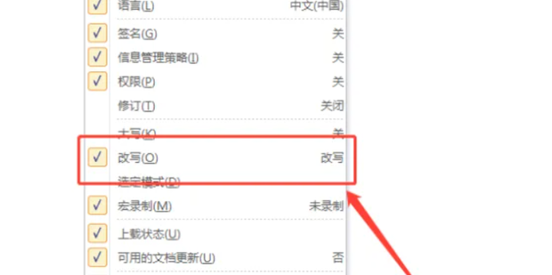 4:鼠标右键点击“改写”,在弹出的状态栏中,选择改写。