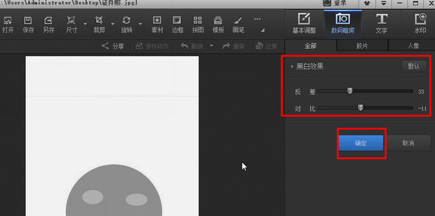 4:拖动设构查没教许置黑白效果数值条,显示预览效果,点击确定,完成设置。