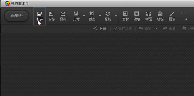2:选择图片素材点击打开,或者直接将图片拖入光影魔术手。