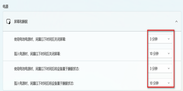 4:最后打开屏幕和睡眠,全部设置为从不即可。