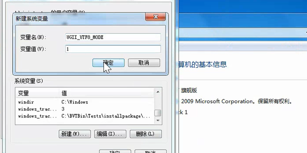 5:输入变量名UGII-UTF8-MODE变量值输入1后确定。