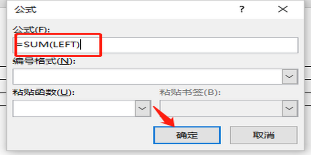4:在公式一行输入“SUM(LEFT)”,点击确庆领板沉留此继映定。需要上下竖列求和使用来自“SUM(ABOVE)”。